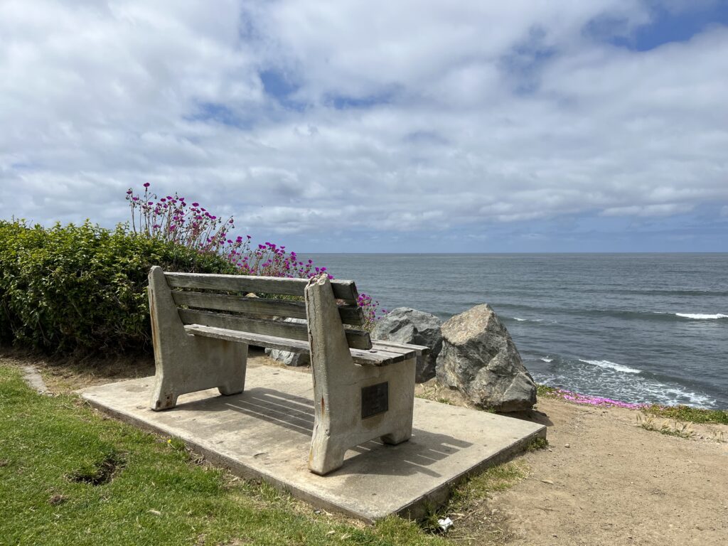Proposed to my wife, Erin on this very bench! Used to live right around the corner and we would walk down often and discuss life, the universe, and everything. Watched the ever present ocean, good memories!